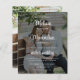 Um convite para casamento de fotos, moderno e virado, mostrando suas informações de casamento sobre uma de suas fotos favoritas com uma camada transparente preta e realçada por um roteiro elegante, mas com um olho no orçamento. Facilmente personalizável com seus detalhes da cerimônia de casamento em branco para um olhar romântico, porém moderno e na moda. A parte de trás do cartão apresenta uma segunda fotografia, seus monogramas e sua data de casamento.