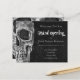 Cabeça de crânio Gótica Orçamento de granulação Grande Abrindo cartão plano. Design de textura única e criativa a preto e branco. Materiais para marketing profissionais de tatuagem. Legal, moderna, moderna, assustadora vintage inspirada. Personalize sua tipografia. Imagem copyright Marg Seregelyi Fotografia.