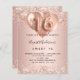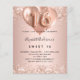Para um doce elegante 16, 16 anos. Um fundo de aparência metálica falsa rosa dourado. Decorado com ouro rosa, falso cor-de-rosa, faíscas e balões. Personalize e adicione um nome e detalhes da festa. O nome é escrito com um script de estilo manuscrito, número 16 com fontes de estilo de balão.