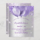 Um fundo na moda falsa de prata. Decorado com brilho de falso colorido violeta e lavanda e balões. Personalize e adicione um nome, idade e detalhes da festa. O nome é escrito com um script de estilo manuscrito