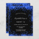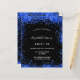Uma garota e uma moda Doce 16, 16. convite de aniversário. Na frente: Um fundo preto chic. Decorado com poeira azul-real de brilho. Personalize e adicione um nome e detalhes da parte. O nome é escrito com um script de estilo manuscrito.