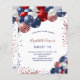 Um fundo branco chic. Decorado com balões patrióticos coloridos em azul vermelho e branco. Personalize e adicione um nome e detalhes da parte. O nome é escrito com um script de estilo manuscrito.