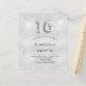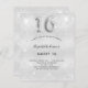 Um convite moderno, na moda e glamouroso para o Swet 16, 16ª festa de aniversário de uma menina. Um fundo com aparência de prata falsa, decorado com poeira brilhante. Personalize e adicione o seu nome e detalhes da festa. O número 16 é escrito com uma fonte de estilo de balão, script.