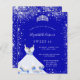 Uma tendência e um convite glamouroso para uma doce 16, 16 festa de aniversário. Um fundo azul real com poeira cintilante de prata falsa, uma tiara e um vestido. O nome é escrito com um moderno estilo escrito à mão. Personalize e adicione os detalhes da sua festa.