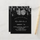 Um convite moderno, na moda e glamouroso para uma festa de aniversário Doce 16, 16. Um fundo preto, decorado com um confete prateado. O nome é escrito com um moderno estilo escrito à mão. Personalize e adicione os detalhes da sua festa. O número 16 é escrito com uma fonte do estilo do balão, padrão leopardo.