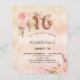 Um fundo rosa dourado, rosado, rosado e roxo, com aspecto metálico. Decorados com ouro rosa e flores, rosas, grama-pampas. Personalize e adicione um nome e detalhes da parte. O número 16 é escrito com uma fonte no estilo do balão.