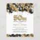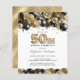 Este convite de 50 anos apresenta balões brilhantes em vários tons de ouro e preto com balão de ouro 50. A queda de galhardetes e confete em preto e ouro completa a vibração da festa. A parte traseira apresenta faixas diagonais douradas. Fácil de personalizar clicando em "Personalizar".
