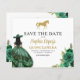 Anuncie seu dia especial com uma encantadora princesa verde esmeralda Quinceañera Salve o convite de data. Apresentando uma paleta verde esmeralda regal e detalhes elegantes, este convite dá o tom para uma celebração real. Adorado com delicados ajustados de sotaque para uma princesa, ele captura perfeitamente a magia de sua próxima quinceñera. Este design de eterno convida os convidados a marcar seus calendários e a se preparar para um dia inesquecível cheio de beleza, alegria e lembranças queridas enquanto você comemora seu aniversário de 15 em estilo.
