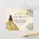 Anuncie seu dia especial com o cartão Floral Dourado Salve a Data Quinceañera. Este elegante design apresenta sotaques florais de ouro luxuosos que exaltam sofisticação e charme. Perfeito para dar o tom para a sua próxima quinceañera, esta salva a data combina um toque de beleza real com elegância eterno. Os detalhes delicados do ouro simbolizam a alegria e graça de sua celebração do marco, garantindo que seus convidados marquem seus calendários para este evento inesquecível. Um belo prelúdio para seu dia da quinceañera!