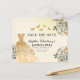 Anuncie seu dia especial com o cartão Floral Dourado Salve a Data Quinceañera. Este elegante design apresenta sotaques florais de ouro luxuosos que exaltam sofisticação e charme. Perfeito para dar o tom para a sua próxima quinceañera, esta salva a data combina um toque de beleza real com elegância eterno. Os detalhes delicados do ouro simbolizam a alegria e graça de sua celebração do marco, garantindo que seus convidados marquem seus calendários para este evento inesquecível. Um belo prelúdio para seu dia da quinceañera!