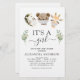 Animais de Floresta Orçamentária com Máscaras de Segurança do Vírus da Corona Pandêmica - Urso, Zebra, Giraffe Eucalyptus Greenery Botanical Primavera e Faux Dourado Glitter É uma Menina Chamada de Chuveiro em fundo branco - inclui uma bela e elegante tipografia de guião com folhas botânicas modernas e verde para a celebração da Mãe Especial Ser.