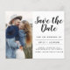 Orçamento Moderno e Elegante Cartão Postal de Save the Date de Casamento Minimalista com Foto. O cartão de save the date inclui tipografia de letra manuscrita moderna com um design chique e simples que você pode adicionar sua foto de noivado personalizada.