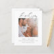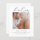 Orçamento Ela Disse Sim Script Anúncio De Noivado Fotográfico. Um alternativo de 4,5 pol x 5,6 pol com preço inferior. Disponível em um STOCK DE CARTÃO SEMI-GLOSS 110 lb, que é a opção padrão (mais espesso para convites), OU um STOCK de PAPEL THINNER FINISH 80 lb FINISH (ideal para gabinetes). Uma design moderna para anunciar suas notícias emocionantes, com um roteiro de conjunto de ornamentados com uma batida cardíaca para Ela Disse Sim acima de sua foto que está em formato quadrado e o resto do texto que você pode personalizar facilmente. Escolha uma foto romântica de vocês dois e substitua a foto da amostra no espaço reservado da modelo. Você também pode alterar o fundo branco na parte frontal e traseira, por meio da opção Personalizar mais, se desejar, bem como a cor do texto para melhor corresponder à foto escolhida.