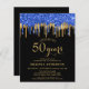 Convide amigos e familiares para a sua festa de aniversário com esses convites de festa de 50º aniversário com respingos de glitter azul, dourado e preto e artigos de festa elegantes. Este convite de aniversário elegante e chique apresenta 'Brindes a 50 Anos', personalize anos para 30, 40, 60, 70, 80, 90 ou qualquer idade. Este design de glitter azul e preto é perfeito para eventos temáticos da polícia, festa da polícia e aplicação da lei, bem como celebrações corporativas e empresariais. Veja nossa coleção para lembranças de festa de aniversário, suprimentos e presentes correspondentes. DIREITOS AUTORAIS © 2020 Judy Burrows, Black Dog Art - Todos os Direitos Reservados. Convite de Festa de Aniversário de 50 anos com respingos de Glitter Azul Dourado e Preto Elegante e dentro do orçamento