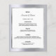 Por favor, note que este menu está no papel folheto e muito fino. Os envelopes não estão incluídos. Para menus mais espessos (mesmo design) visite nossa loja. Um casamento elegante e glamouroso ou um cardápio de casamento/ aniversário de casamento. Modelos para seus nomes, data e menu de casamento. Um falso quadro prateado e branco e uma cor de fundo mágica, falso glamourosa, metálica prateada. Letras pretas coloridas. Fundo: fundo metálico prateado falsa.