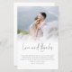 POR FAVOR, NOTE que há UM convite por folha. Roteiro de Código QR de Foto de Orçamento Convite de Casamento. Um tamanho MAIOR 5,5” x 8,5” a um preço acessível. POR FAVOR, NOTE QUE OS ENVELOPES OPCIONAIS SÃO UM POUCO MAIORES EM TAMANHO, COM 6,75” x 9” aprox. Orçamento Roteiro Elegante Foto de Casamento Amor Agradecimento. Amor e agradecimento estão em um estilo manuscrito. Personalize facilmente o restante do texto com seus próprios detalhes e substitua a foto de amostra na frente pela sua.