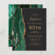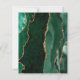 A borda esquerda deste elegante e moderno convite de aniversário 50º apresenta uma esmeralda verde aquarela agate borda com brilho dourado. O texto personalizável combina manuscrito dourado, fontes em copperplate e itálico em um fundo preto de slate. O verso apresenta um design emerald verde e dourado.