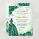 Floral Emerald Green Princess Gress Glitter Sparkle Tiara Crown Butterfly 15 Birthday Quinceanera Convite