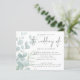 Orçamento Eucalyptus Blue QR Code Convite de Casamento. Um alternativo de 4,5 pol x 5,6 pol com preço inferior. Disponível em um STOCK DE CARTÃO SEMI-GLOSS 110 lb, que é a opção padrão (mais espesso para convites), OU um STOCK de PAPEL THINNER FINISH 80 lb FINISH (ideal para gabinetes). Adicione seu código QR ao seu site de casamento no verso faz com que esta seja uma opção conveniente para seus convidados para RSVP e veja todos os detalhes sem a necessidade de RSVP separado e cartões de detalhes. Você pode criar códigos QR gratuitamente on-line. Basta pesquisar "Criador de código QR" e muitas opções surgem para criar gratuitamente. Um design elegante com folhas delicadas de eucalipto que fazem fronteira com a esquerda e que se desvanecem até uma tonalidade e depois parcialmente sobrepostas pelo texto à direita. O Casamento está em um guião manuscrito de na moda. Personalize facilmente o resto do texto para seus próprios detalhes.