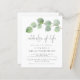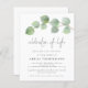 Um valor para o alternativo do ORÇAMENTO em tamanho menor de 4,5 x 5,6" de semirbrilho de 110 lbs, que é de espessura semelhante a um cartão postal (no entanto, não é adequado para uso como cartão postal). POR FAVOR, OBSERVE QUE HÁ UM convite por folha. Orçamento Eucalyptus Celebração Do Convite À Vida. Estilo botânico minimalista, com folhagem aquosa no topo. Um roteiro manuscrito para Cebração da Vida e o resto do texto que você pode personalizar facilmente.