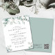 Convite de casamento multifuncional, acessível ao orçamento, com aquarelas de verde sage eucalipto verde verde verde, na moda e tipografia de cinza mole. No verso, insira o endereço do seu site de casamento para criar um código QR para seus convidados digitalizarem para RSVP on-line e obter detalhes adicionais de casamento, como instruções e acomodações.