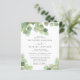 Convite de casamento elegante, tudo em um, com orçamento, com aquarelas de verde-sábio eucalipto verde com sotaques dourados, na moda e tipografia de cinza mole. Insira o endereço do seu site de casamento para criar um código de QR digitalizável para seus convidados a RSVP on-line e obter informações sobre todos os detalhes, como instruções e acomodações.