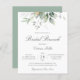 Bonito convite para brunch de barato, com a aquarela eucalipto e folhas de ouro com roteiro de caligrafia.