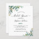 Convide a família e os amigos para o seu Chá de panela com este convite para na moda decorado com aquarela eucalipto e verde.