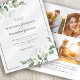 Faça a sensação romântica para o dia do seu casamento com este barato moderno design com a cor d'água das folhas de eucalipto. Há espaço no verso para quatro fotografias e seu código QR direcionando convidados para o seu site de casamento. **POR FAVOR LEIA ANTES DE COMPRAR** Nossa pequena faixa de papelaria orçamental mede 4,5" x 5,6" e ajustado envelope A6, que estão disponíveis em todos os tipos de cores em sua loja de papelaria local ou você pode adicionar brancos ao seu pedido antes de fazer o check-out. Cada folha é um convite - não é necessário cortar. O estoque de cartão é branco brilhante, com acabamento semirbrilhante e um peso de 110 lbs, adequado para convites. NÃO aconselhamos você a escolher a opção de papel satin, pois é um papel de 80 lb muito mais fino, que é mais parecido com as páginas de revistas do que o estoque de papelão. Se preferir um convite clássico de tamanho 5x7 impresso no estoque de cartão de 120lb com um acabamento mate, você pode transferir esse design para uma placa plana usando as opções de design de transferência. As placas planas não estão na faixa de orçamento, mas você tem uma variedade maior de tamanhos e opções de estoque de cartão e elas são enviadas com envelopes. A forma e o tamanho mais adequados ao design aparecerão nas opções de transferência do design. Se você fizer alterações na forma ou no tamanho ou escolher outro produto e o design for cortado de alguma forma ou não parecer direito na página, você precisará usar o Serviço de Design ao Vivo para que alguém ajuste o layout para você, a menos que você se sinta confortável fazendo isso sozinho. Seu pedido vai diretamente para as impressoras, de modo que o que você vê na tela é o que será impresso e enviado a você. Com isso em mente, por favor, verifique também triplamente se há erros de ortografia ou informações incorretas antes de fazer seu pedido. As fotografias dos modelos são para fins ilustrativos e podem ser mudadas para as suas.
