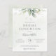 Belo convite para o almoço de noiva com aquarela eucalipto e folhas de ouro.
