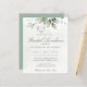 Belo convite para o almoço de noiva com aquarela eucalipto e folhas de ouro.