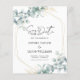 Este Dourado Eucalyptus Greenery Casamento Salve a data é perfeito para um casamento no estilo de primavera ou jardim de verão. Isso permite salvar a data em que o anúncio apresenta a cor d'água rustica eucalipto e verde-sábio com sotaques geométricos dourados. Faça deste cartão seu, incluindo seus nomes e detalhes do casamento. Para mais personalização, clique no link "personalizar mais" e use a ferramenta design avançada para modificar este modelo.