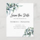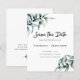 Orçamento Eucalyptus Greenery Wedding Salvar a Data... Folhas de eucalipto verde poeirento dão uma aparência naturalmente elegante ao nosso barato Casamento Salve os Cartões de Data. Com suas lindas formações em folha de curvatura, eucalipto é uma ilustração perfeita para casamentos florais ou naturais, casamentos de jardim ao ar livre, além de casamentos no inverno no sul. O texto "Salvar a Data" é um elemento gráfico; todos os outros textos em frente e verso podem ser facilmente revisados no modelo de personalização. NOTA: Os cartões de orçamento não incluem envelopes automaticamente, porque muitas pessoas preferem comprar os próprios. Entretanto, há uma opção para solicitar envelopes usando a seta suspensa "opção de envelope".