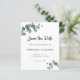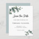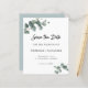 Folhas de eucalipto verde empoeirado dão um olhar naturalmente elegante para esse Casamento de Orçamento Salve os Cartões de Data. Com suas lindas formações folhosas em tons de azul e verde, o eucalipto é uma ilustração perfeita para casamentos florais ou naturais, casamentos de jardim ao ar livre, além de casamentos no inverno no sul. O texto "Salvar a Data" é um elemento gráfico; todos os outros textos em frente e verso podem ser facilmente revisados no modelo de personalização. NOTA: Os cartões de orçamento não incluem envelopes automaticamente, porque muitas pessoas preferem comprar os próprios. Entretanto, há uma opção para solicitar envelopes usando a seta suspensa "opção de envelope".