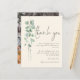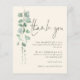 Um valor para o alternativo do ORÇAMENTO em tamanho menor de 4,5 x 5,6" de semirbrilho de 110 lbs, que é de espessura semelhante a um cartão postal (no entanto, não é adequado para uso como cartão postal). POR FAVOR, OBSERVE QUE HÁ UM convite por folha. Orçamento Eucalyptus Photo Ivory Obrigado. Estilo botânico moderno com folhagem de cor d'água fluindo para baixo no lado esquerdo e texto para a direita. Um script de estilo manuscrito para Obrigado e o resto do texto que você pode personalizar facilmente em um fundo de marfim. Substitua a foto da amostra no verso por sua favorita do dia do casamento.