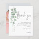 Um valor para o alternativo do ORÇAMENTO em tamanho menor de 4,5 x 5,6" de semirbrilho de 110 lbs, que é de espessura semelhante a um cartão postal (no entanto, não é adequado para uso como cartão postal). POR FAVOR, OBSERVE QUE HÁ UM convite por folha. Orçamento Eucalyptus Photo Quinceañera Obrigado. Estilo moderno minimalista com esta botânica com folhagem de aquarela fluindo para baixo no lado esquerdo e texto para a direita. Um script de estilo manuscrito para Obrigado e o resto do texto que você pode personalizar facilmente. Substitua o exemplo de foto no verso por seu favorito da sua festa.
