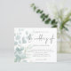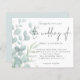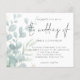 Casamento De Eucalyptus Pó Azul. Um alternativo de 4,5 pol x 5,6 pol com preço inferior. Disponível em um STOCK DE CARTÃO SEMI GLOSS 110 lb, que é a opção padrão (mais espesso para convites), OU um STOCK DE PAPEL THINNER SATIN FINISH 80 lb (ideal para gabinetes). Os envelopes são um extra opcional e são ligeiramente maiores que o tamanho da placa. Um design elegante com folhas delicadas de eucalipto que fazem fronteira com a esquerda e que se desvanecem até uma tonalidade e depois parcialmente sobrepostas pelo texto à direita. O Casamento está em um guião manuscrito de na moda. Personalize facilmente o resto do texto para seus próprios detalhes.