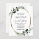 Orçamento Eucalyptus Tudo em Um Código QR RSVP Convite Metálico Dourado para Casamento... Nosso convite de casamento botânico luxo "Tudo em Um" apresenta uma estrutura oval metálica dourada embelezada com folhas de eucalipto abarrotadas de esmeraldas junto ao seu texto de convite de casamento personalizado. A parte traseira do convite também exibe o código QR do seu site de casamento, assim como o próprio URL do site, permitindo que seus convidados RSVP online sejam facilmente visualizados e todos os detalhes normalmente enviados em um pacote de casamento. Este convite de casamento ao estilo moderno foi concebido para ser elegante e consciente do orçamento... para não mencionar a poupança de tempo. Todo texto de exemplo pode ser facilmente revisado com suas próprias informações sobre o modelo de personalização. NOTA: Os cartões de orçamento não vêm automaticamente com envelopes, assim como os cartões de convite tradicionais, mas você pode comprá-los na mesma página na saída, se desejar. Tudo isso em um design de RSVP de código QR também está disponível em um cartão de convite de casamento tradicional 5x7.