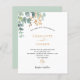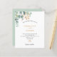 Um fundo branco chic. Decorados com folhas de eucalipto, prigos, verde e dourado, de cor aquosa verde. Personalize e adicione seus nomes e detalhes do casamento. Letras negras. Verso: cor verde do fundo.