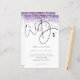 Fazemos Script De Convite de casamento De Confetti Roxo. Um tamanho maior de 5,5" x 8,5" a um preço orçamentário, em um STOCK CARD SEMI GLOSS de 110 lb, excelente de convites, aproximadamente na mesma espessura de um cartão postal, ou um estoque LINEN elegante de 110 lb - para um luxo, ligeiramente mais fino, com um valor de excelente. OBSERVE QUE OS ENVELOPES OPCIONAIS SÃO UM POUCO MAIORES EM TAMANHO A 6,75" x 9" aprox. Este alternativo de tamanho de orçamento também está disponível em outras opções de papel. O papel FELT de 100 lbs é colorido por buff, NÃO branco, então adiciona um toque rústico. O estoque de papel MATTE de 80 lb é branco brilhante, para impressão nítida, excelente para seus menus e programas, enquanto o papel SATIN de 80 lb é fino e leve, ideal para gabinetes. O script do na moda set We Do está no topo parcialmente sobreposto ao confetti.O resto do texto que você pode personalizar facilmente. Uma borda brilhante de falso roxo está no topo na frente e atrás. As cores do texto e do plano de fundo podem ser alteradas se você desejar por meio da opção personalizar mais.