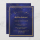 Um cartão de convite de aniversário moderno, moderno 50º (ou qualquer idade) para homens, caras, homens. Um fundo azul escuro, azul marinho. A cor azul é irregular. Com uma falso moldura dourada e um sprinkle confetti de ouro, letras coloridas de ouro. Personalize e adicione as informações de sua parte. Fundo: fundo azul com sprinkle confetti.