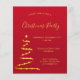 Um Convite de festas de Natal moderno, simples e moderno, em vermelho e falso ouro. Um clássico fundo vermelho com uma abstrato moderna, brilhante, falsa árvore de Natal de ouro, decorada com estrelas. Com o texto: Festa de Natal escrita com o moderno estilo escrito à mão com letra de ouro. Personalize e adicione os detalhes da sua festa.