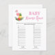 Prepare-se para divertir-se com o nosso jogo de Chá de fraldas da Corrida de Nomes de Bebê Flamingo no Orçamento, uma atividade encantadora para a sua celebração! Neste jogo, os convidados correrão contra o relógio para inventar tantos nomes de bebês por alfabeto no tempo alocado. Aquele com mais nomes ganha um doce prêmio! Criado com flamingo encantador, abacaxi e detalhes tropicais, este jogo adiciona um toque de doçura às suas festividades de chá de fraldas. É perfeito para manter convidados entretidos e noivos enquanto celebra a chegada do seu pequeno. Quer você esteja hospedando uma pequena reunião ou uma grande festa, todos vão gostar de participar desse jogo divertido e excitante. Com o nosso jogo de Chás de fraldas da Corrida do Nome Flamingo de Bebê do Orçamento, você pode adicionar um toque de diversão e riso à sua celebração enquanto cria memórias duradouras com seus entes queridos. Que a corrida comece!