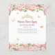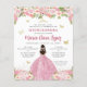 Campanha Floral Cor-de-Rosa Cinzenta Princesa Cinza Rosa Glauca Tiara Borboleta Dourada Glitter Sparkle 15 Aniversário Quinceanera Convite