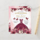 Celebre seu dia especial com o Convite à Princesa Quinceañera Floral Burgundy Butterfly. Este elegante design apresenta matizes robustos adormecidos com delicados sotaques florais e borboletas, simbolizando beleza e transformação. Perfeito para uma quinceñera, temática princesa, o convite capta a essência da graça e da sofisticação. Os detalhes intrincados e as cores vibrantes definem o tom para uma celebração inesquecível, convidando seus convidados a se juntar a este evento uma vez na vida. Torne a sua quinceañera mágica com este eterno incrível que reflete o seu estilo e charme.