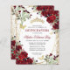 Clássico Floral Burgundy Maroon Red Tiara Sparkle Glitter RSVP Birthday Quinceañera Convite