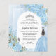 Floral Dusty Cinza Azul Prata Princesa Vestido Lúcio Glitter Glitter Tiara Crown Borboleta 15 de Aniversário Quinceanera Convite