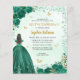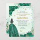 Floral Emerald Green Princess Gress Glitter Sparkle Tiara Crown Butterfly 15 Birthday Quinceanera Convite