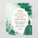 Floral Emerald Green Princess Gress Glitter Sparkle Tiara Crown Butterfly 15 Birthday Quinceanera Convite