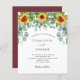 Na frente: um fundo branco decorado com girassóis, eucalipto verde. Personalize e adicione seus nomes e detalhes da festa. Volta: Um fundo tinto de vinho, colorido de marrom